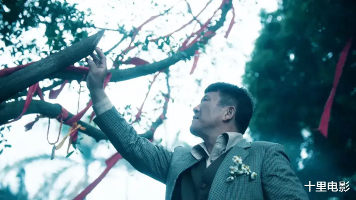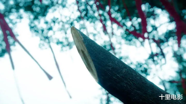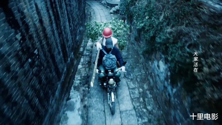 另一边,热闹的街头上,一辆摩托车穿着巷子而过,后座的人扛着半截的树杈,与平静的小城格格不入。